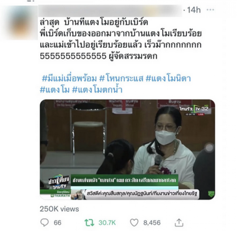 พี่เบิร์ดแยกตัวออกไป โทรหาได้ แต่ว่าเขายังไม่พร้อมที่จะคุยเยอะๆ แต่เขาขอ สิ่งที่เขาขอคือรูปน้องโมที่เขาชอบ รูปภาพที่เขาชอบ และก็ขอหมอนที่เขานอนกับน้องโม หมอน ที่นอน หมอนข้าง ตุ๊กตา สิ่งที่เขาชอบ ที่เขาใช้ร่วมกัน เขาขอไป ที่บ้านตั้งแต่น้องโม จากไป ไม่มีใครอยู่เลย