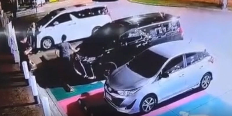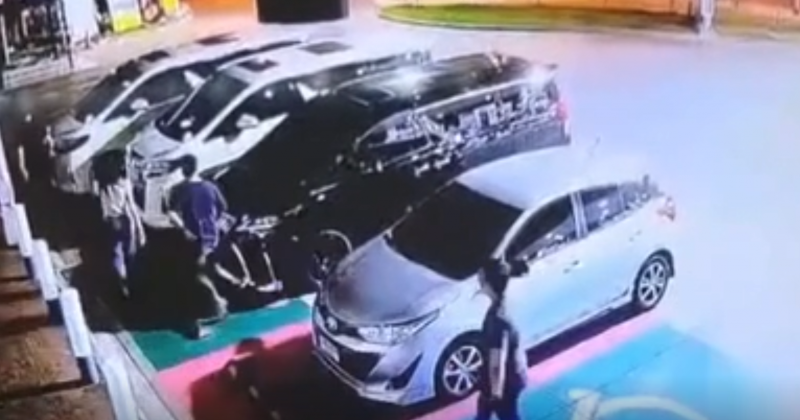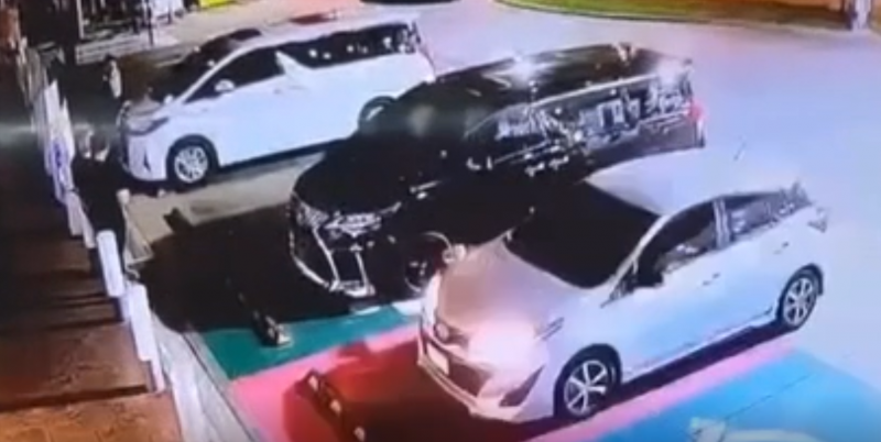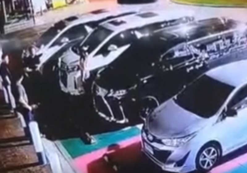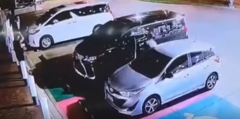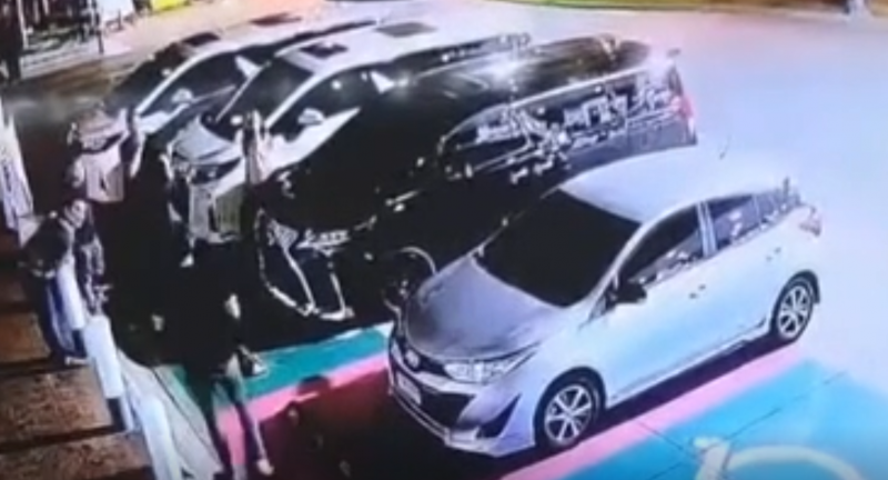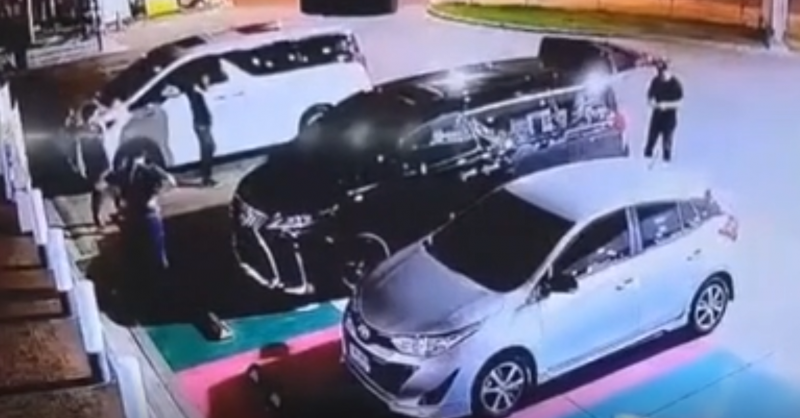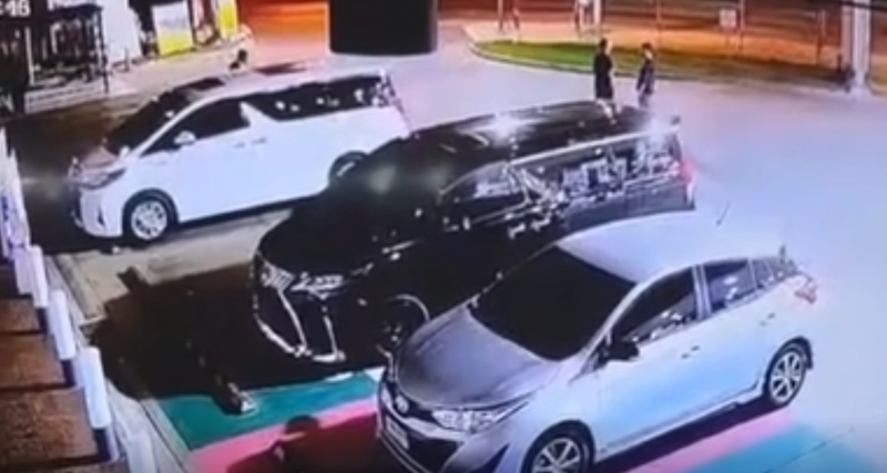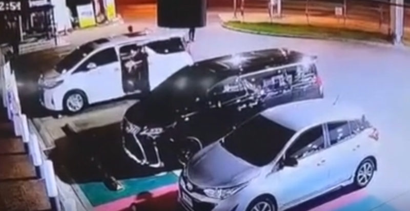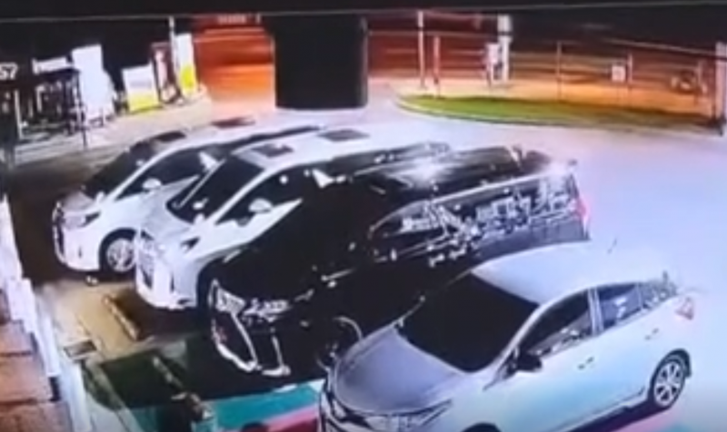 ภาพจากกล้องวงจรปิด จับภาพวันที่ 25 ก.พ. เวลา 02.01 น. พบรถอัลพาร์ดสีดำของนายปอที่นั่งมา ถัดมาเป็นอัลพาร์ดสีขาวของนายโรเบิร์ต ได้มาจอดที่บริเวณลานจอดของปั๊ม ในจังหวะนั้นได้มีรถเก๋งยี่ห้อโตโยต้ายาริส สีบรอนซ์ มาจอดเป็นคันที่ 3 ซึ่งมีนายจ๊อบเดินลงมาจากรถ จากนั้น อัลพาร์ดสีขาวของแซนก็ขับเข้ามาจอดเรียงกัน