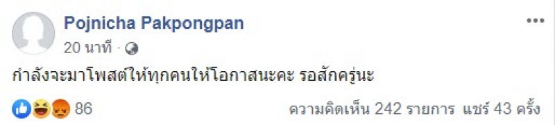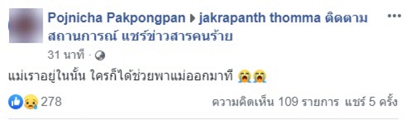 จากกรณีเหตุการณ์ที่โคราช และต่อมาเฟซบุ๊ก pojnicha pakpongpan โพสต์ข้อความระบุว่า แม่เราอยู่ในนั้น ใครก็ได้ช่วยพาแม่ออกมาที โดยแม่ส่งข้อความมาหาก่อนติดต่อไม่ได้
