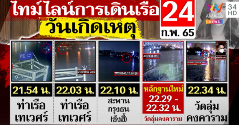 ซึ่งหลังเกิดเหตุที่พบว่าวันที่ 24 ก.พ. 65 เมื่อเวลา 22.34 น. พบภาพจากกล้องวงจรปิดของเรือกลุ่มนายปอ กำลังขับเรือวนหาแตงโม แต่ตรวจสอบย้อนหลังแล้ว กล้องวงจรปิดช่วงเวลาก่อนหน้านี้ 22.32 น. เกิดมีปัญหา จึงไม่มีภาพเหตุการณ์ช่วงนั้น พบเพียงกล้องวงจรปิดในช่วงเวลา 22.10 น. ก่อนเกิดเหตุและหลังเกิดเหตุ