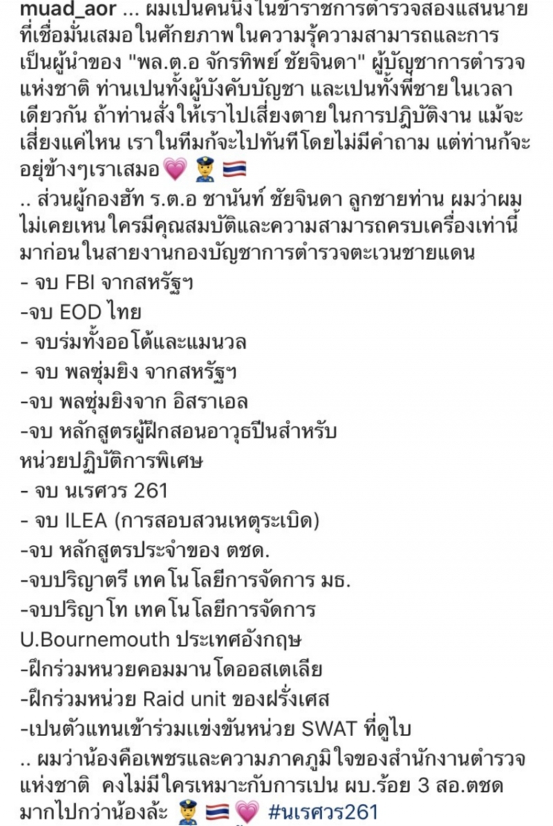 ล่าสุดทางด้าน หมวดอ๋อ หรือ พ ต ท รณกร รัตนะพร อดีตแฟนเก่าของ แอฟ ทักษอร ภักดิ์สุขเจริญ ได้ออกมาโพสต์ข้อความในฐานะของตำรวจถึงการทำงานของ พล ต อ จักรทิพย์ ชัยจินดา เอาไว้ดังนี้