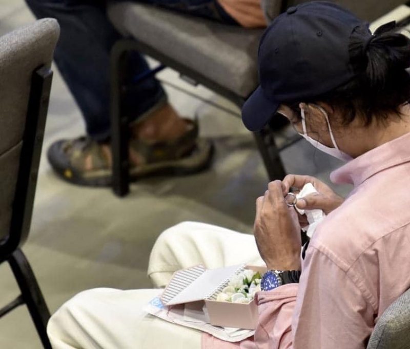ต่อมา เบิร์ดกลับเข้ามานั่งในพิธีอีกครั้ง นำกล่องใบหนึ่งภายในบรรจุดอกไม้ และแหวนสีเงิน ขึ้นมานั่งมองแล้วร่ำไห้ตลอดเวลา ก่อนที่จะนำแหวนวงนี้มาวางไว้หน้าซุ้มลูกโป่ง ที่เจ้าตัวเป็นคนจัดให้แฟนสาวด้วย ก่อนที่จะเดินทางกลับทันที