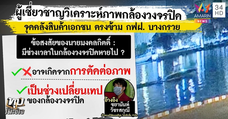 นายชยานันท์ วัชรสกุณี เจ้าของบริษัทแอตติจูด โปรดักชั่น จำกัด ผู้เชี่ยวชาญเรื่องการตัดต่อ เปิดเผยว่า จากการดูภาพจากกล้องวงจรปิดแล้ว คลิปวงจรปิดบางช่วงค้าง ช่วง 22.32 น. โดยก่อนหน้านี้คลิปวิดีโอไหลลื่นมาโดยตลอด แต่พอมาช่วง 22.32.08 น. คลิปวิดีโอหยุดนิ่งและตัดช่วงไป เกือบ 1 วินาที และจั๊มคัตไปเลย คาดว่าจุดที่ค้างอาจเป็นจุดที่ตกพอดีหรือไม่
