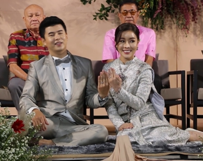 โดนทันทีที่ถึงฤกษ์มงคล 08.29 น.นางสาวพิชญา ภาโนมัย หรือใบหลิว พร้อมญาติผู้ใหญ่ฝ่ายหญิงและเพื่อนเจ้าสาวได้ตั้งขบวนขันหมาก พร้อมสินสอดทองหมั้นมูลค่ารวมกว่า 12 ล้านบาท โดยมีทั้งเงินสดจำนวน 2 ล้านบาท เครื่องเพชรและทองคำรวมมูลค่า 5 แสนบาท โฉนดที่ดิน ที่ อ.อุบลรัตน์ จ.ขอนแก่น เนื้อที่ 5 ไร่ มูลค่ากว่า 5 แสนบาท รถยนต์เก๋ง BMW ซีรี่ส์ 3 ป้ายแดง ราคา 2.8 ล้านบาท บ้านพร้อมที่ดินในหมู่บ้านภาภิรมย์ จำนวน 1 หลัง ราคา 7 ล้านบาท ยกขบวนขันหมากแห่เข้าไปสู่ขอฝ่ายชายตามรูปแบบประเพณีของไทย