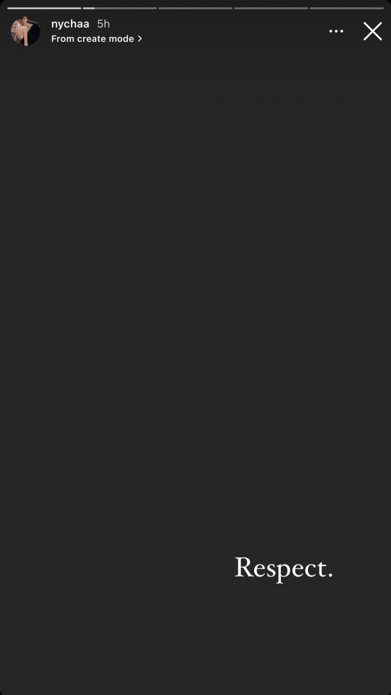 ล่าสุดช่วงดึกวันที่ 14 มี.ค. 2565 ณิชา ได้โพสต์ภาพหน้าจอสีดำ พร้อมแคปชันสั้น ๆ ว่า Respect ซึ่งแปลได้ว่า เคารพ หรือ ให้เกียรติ ทันทีที่นางเอกสาวโพสต์หลายคนพร้อมโยงไปถึงเรื่องที่หนุ่ม โตโน่ ไปร่วมอำลา แตงโม ซึ่งสาวณิชาตั้งใจจะสื่อว่าให้เกียรติทั้งคู่เช่นกัน
