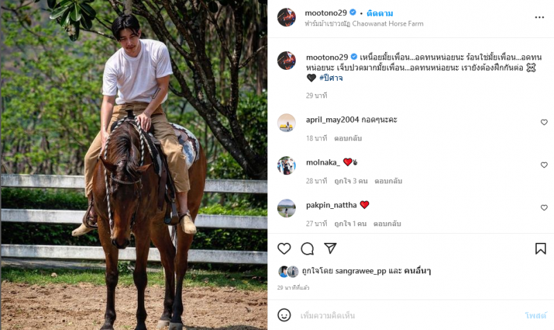 ล่าสุดโตโน่ก็ได้เคลื่อนไหวผ่านไอจีครั้งแรก หลังสูญเสียแตงโม โดยได้โพสต์ระบุข้อความว่า เหนื่อยมั้ยเพื่อน...อดทนหน่อยนะ ร้อนใช่มั้ยเพื่อน...อดทนหน่อยนะ เจ็บปวดมากมั้ยเพื่อน อดทนหน่อยนะ เรายังต้องฝึกกันต่อ