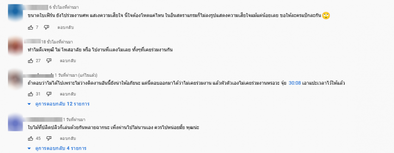 โดย จุ๋ย ตอบว่า ไม่ได้ไป เพราะว่าจุ๋ยไม่ได้ทำงานร่วมกับน้อง แต่ว่าแสดงความเสียใจด้วยวิธีอื่น ขณะที่ ดีเจพุฒ ไม่ได้ตอบว่าอะไรเพียงแต่พยักหน้า กลายเป็นดราม่างานเข้า โดยเฉพาะกับ ดีเจพุฒ ชาวเน็ตเข้ามาดราม่าคอมเมนต์ต่างๆ นานา ว่าเคยร่วมงานกันก่อนแตงโมจากไป งานเข้าดราม่ากลางโซเชียล