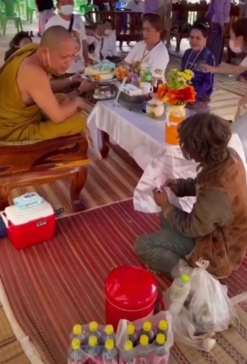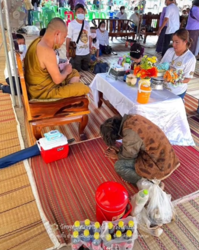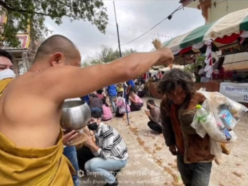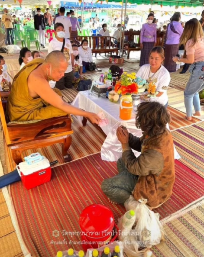 ชายเร่ร่อน มาทำบุญงานยกช่อฟ้า 5 บ.