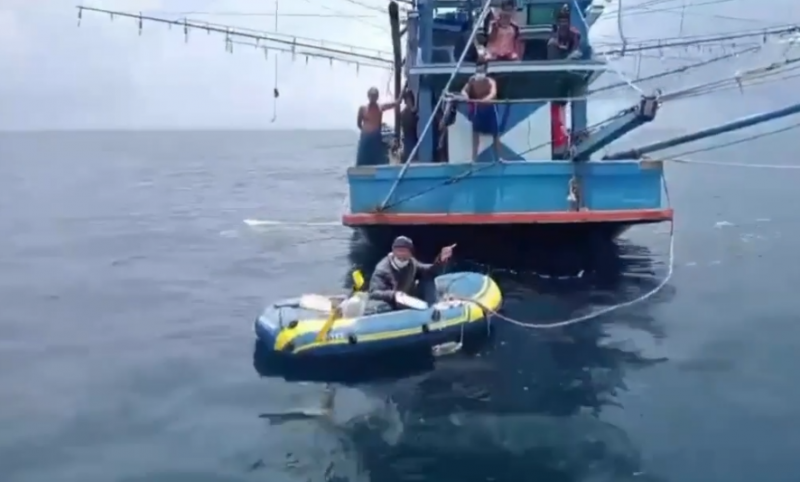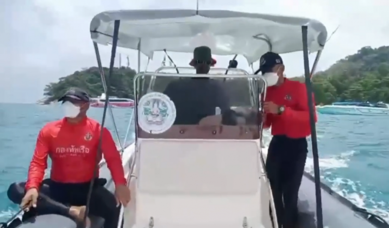 จนท.นรภ.ทร.ก.สิมิลัน ร่วมกับ จนท.อุทยานแห่งชาติหมู่เกาะสิมิลัน ออกเดินทางด้วยเรือยางพื้นแข็งเข้าตรวจสอบตามตำบลที่ได้รับแจ้ง โดยในเวลา 12.45 น. ได้เดินทางมาถึงเรือประมง ต.ครองเพชรรุ่งเรือง แบะพบว่าลูกเรือกำลังช่วยเหลือบุคคลดังกล่าวด้วยกากผูกเรือยางเป่าลมไว้ที่บริเวณท้ายเรือ
