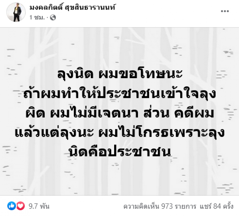ส.ส.เต้ โพสต์เฟซบุ๊กขอโทษ ลุงนิด