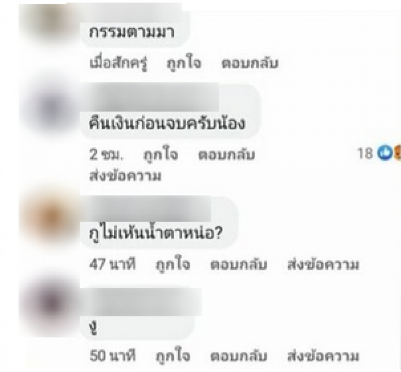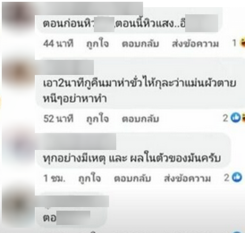 หลังจากที่ไลฟ์ ชาวโซเชียลต่างก็เข้ามาแสดงความคิดเห็น ทำนองว่าไม่จำเป็นต้องทำแบบนี้ ก็แค่บอกกับลูกค้า หรือ อธิบายลูกค้าไปก็จบ หรือใครรอไม่ได้ก็โอนเงินเงินแค่นั้น