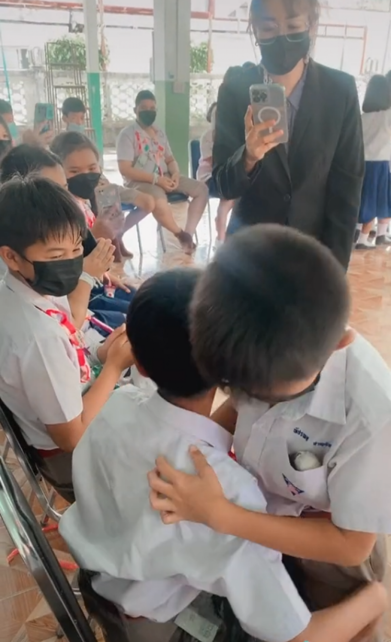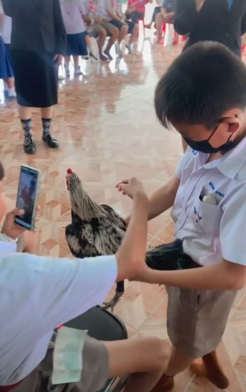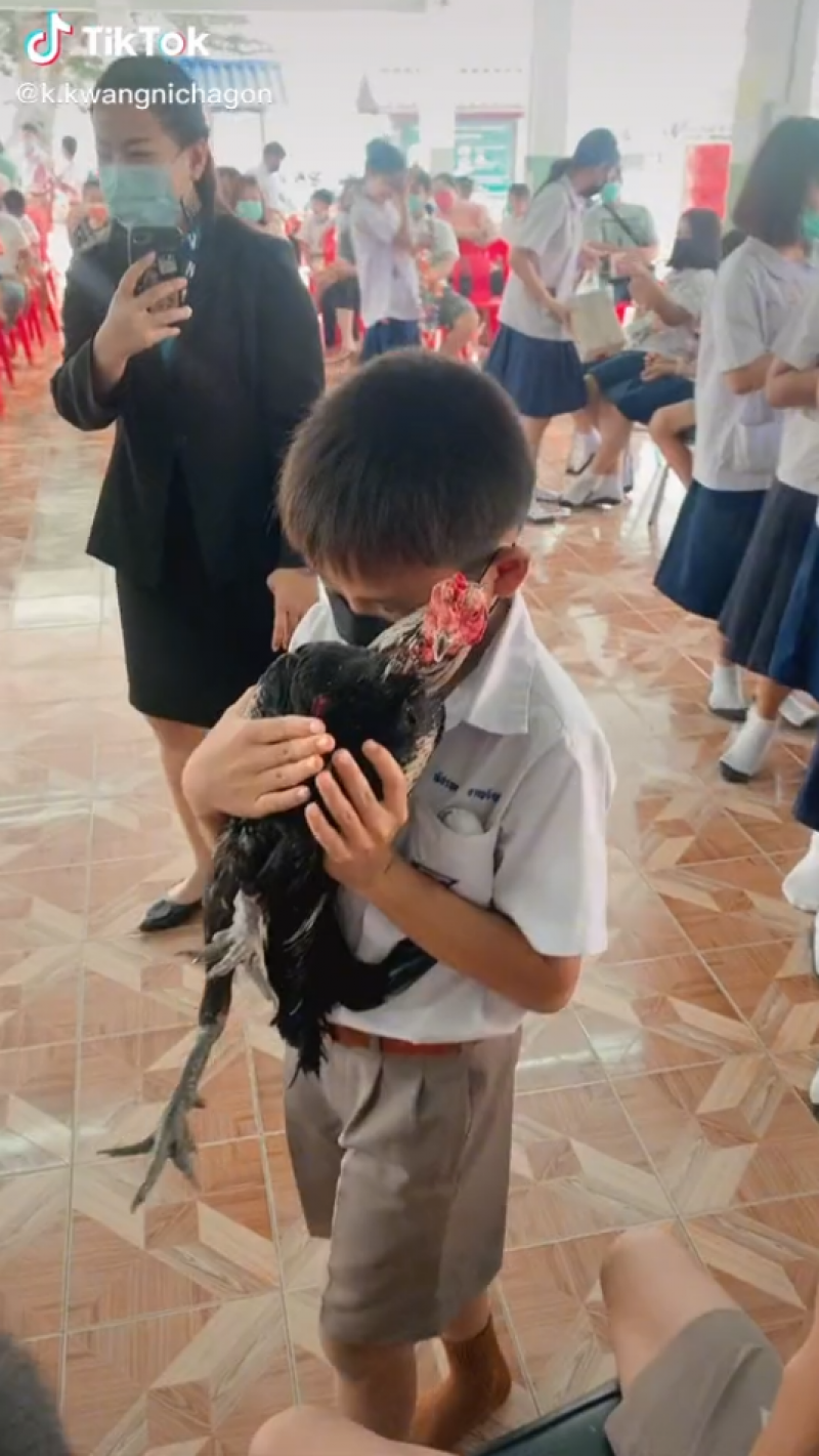 น้อง ป.4 อุ้มไก่ชน เป็นของขวัญวันปัจฉิมฯ รุ่นพี่ ป.6