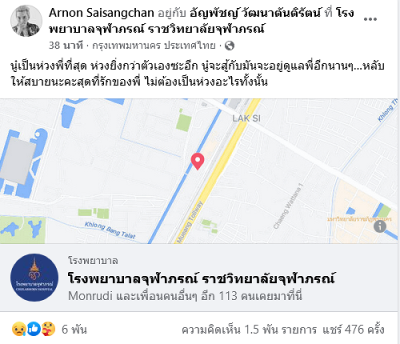 นู๋เป็นห่วงพี่ที่สุด ห่วงยิ่งกว่าตัวเองซะอีก นู๋จะสู้กับมันจะอยู่ดูแลพี่อีกนานๆ หลับให้สบายนะคะสุดที่รักของพี่ ไม่ต้องเป็นห่วงอะไรทั้งนั้น