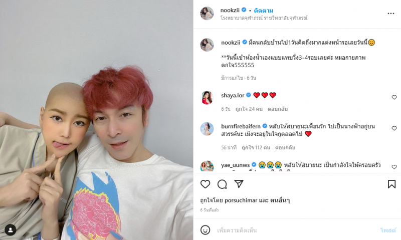 โดยวันนี้เราจะพาไปเปิดโพสต์สุดท้ายของนุ๊กซี่กันค่ะ ซึ่งเมื่อ 6 วันที่แล้ว ยังมีการโพสต์อัพเดทอาการ ยังยิ้มได้และแข็งแรงอยู่เลย แต่มาวันนี้ก็ทำเอาหลายคนถึงกับใจหายเหมือนกัน โดยได้โพสต์ระบุข้อความว่า