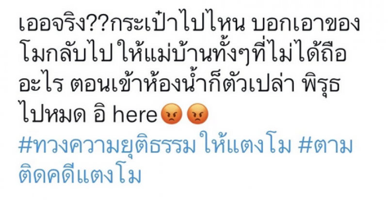 โดยโพสต์นี้มีคนรีทวิตเป็นจำนวนมาก เพราะมีข้อสงสัยเหมือนกับที่เจ้าของแอคเคาท์มาตั้งข้อสังเกต อย่างความคิดเห็นหนึ่งเขียนไว้ว่า เออจริง ?? กระเป๋าไปไหน บอกเอาของโมกลับไปให้แม่บ้านทั้งๆที่ไม่ได้ถืออะไร ตอนเข้าห้องน้ำก็ตัวเปล่า พิรุธไปหมด อิ.. โดยหากย้อนกลับไปในช่วงแรกที่เกิดเหตุ กระติก ได้ให้สัมภาษณ์กับสื่อมวลชนว่า ของทุกอย่างทั้งกระเป๋าและโทรศัพท์มือถือ ได้นำไปฝากไว้กับแม่บ้านที่บ้านของ แตงโม แล้วหลังเกิดเหตุ แต่เมื่อมีข้อถกเถียงนี้ขึ้นมาก็ไม่รู้ว่าสาวกระติกจะอธิบายว่าอย่างไร คงต้องรอเจ้าตัวออกมาชี้แจงอีกครั้ง