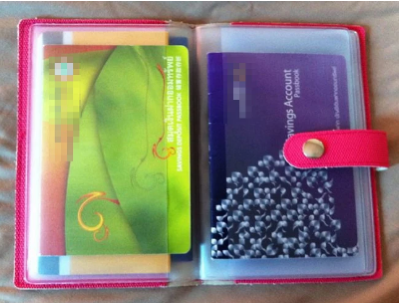 4.สมุดบัญชีธนาคาร มีหลายท่านที่เก็บสมุดบัญชีธนาคารต่างๆ เก็บไว้ในกระเป๋าสตางค์ด้วย ซึ่งเราไม่ควรจะทำเช่นนั้น เพราะเมื่อกระเป๋าสตางค์หาย สมุดบัญชีธนาคารต่างๆ เหล่านั้นจะเป็นช่องทางให้พวกหัวขโมยทั้งหลายไปปลอมแปลงเอกสารและจับจ่ายใช้สอยเงินในธนาคารของเราได้โดยง่าย ดังนั้น ควรเก็บสมุดบัญชีธนาคารต่างๆไว้ที่บ้านจะปลอดภัยกว่า