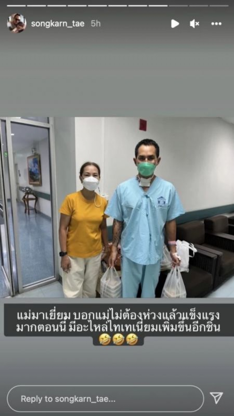 โดยล่าสุดหนุ่ม สงกรานต์ ได้โพสต์สตอรี่แบบรัวๆ ทั้งกับคุณแม่และเพื่อนๆ ที่ส่งของมาเยี่ยม โดยบอกแม่ไม้ต้องห่วงแล้วแข็งแรงมากตอนนี้ มีอะไหล่ไทเทเนี่ยมเพิ่มขึ้นอีกชิ้น