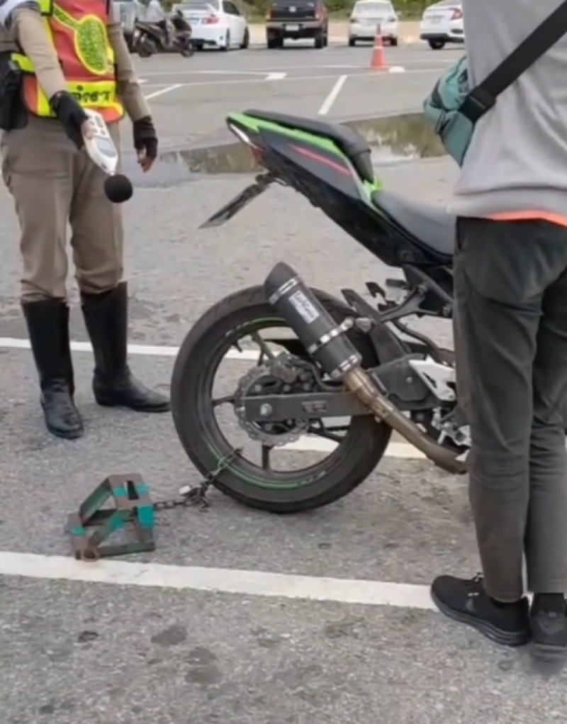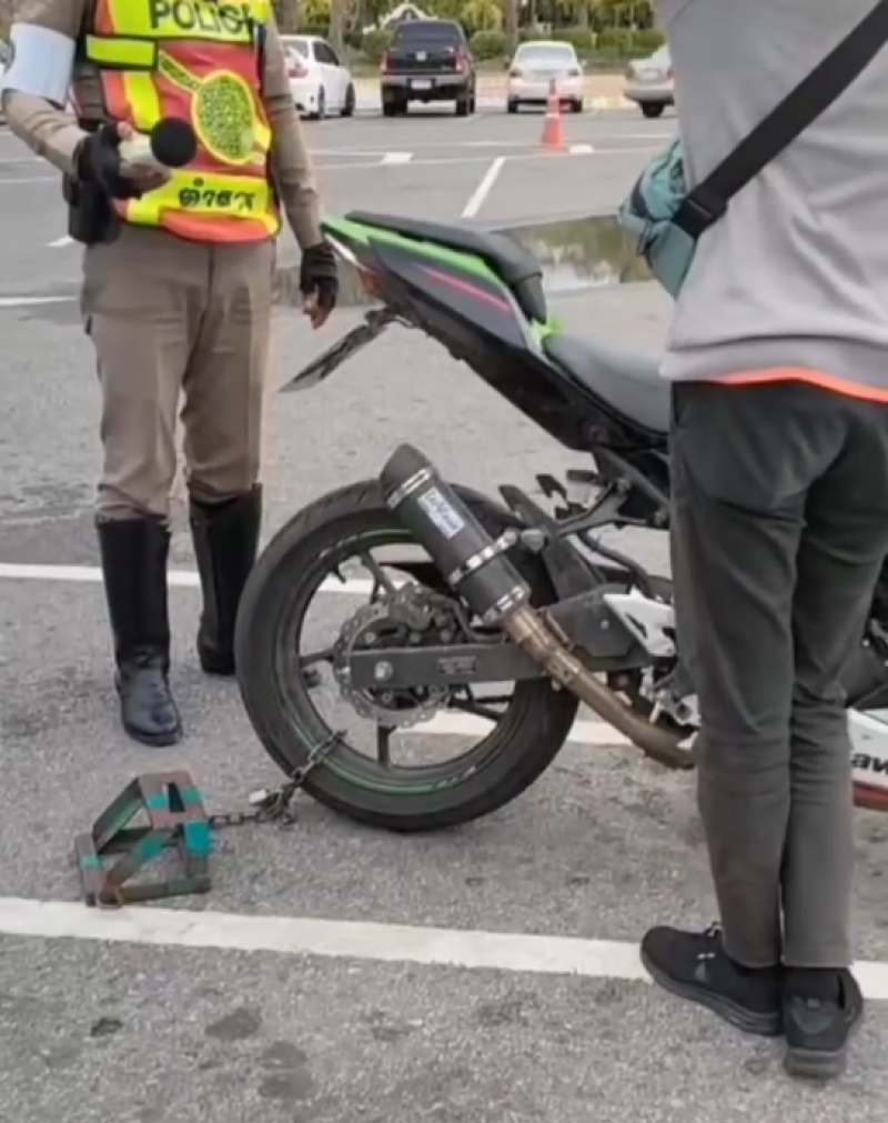 โดยผู้โพสต์ได้ระบุว่า ไม่ได้จอดในที่ห้ามจอด ไม่ใช่ด่านตรวจ ไม่ได้ไปเบิ้นเครื่องใส่ใคร จอดรถไว้ไปเดินชมวิว กลับมาถูกล็อคล้อเฉย ถูกหรือผิดขอสอบถามครับ ทั้งนี้ ผู้โพสต์เผยว่าท่อรถดังกล่าว เป็นของแต่งที่ทางศูนย์แถมมาให้ เจ้าตัวยืนยันว่าเสียงท่อไม่ได้ดังมาก