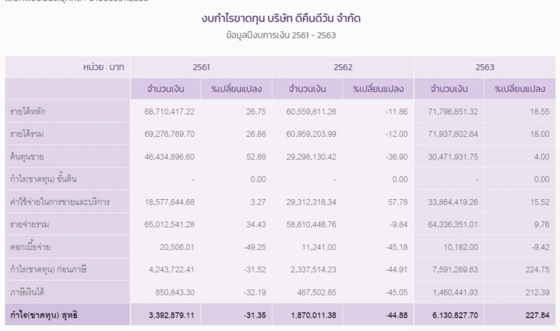หากเทียบตั้งแต่ปี 2561 พบว่ารายได้-กำไรปรับตัวดีขึ้น ปี 2561 มีรายได้รวม 69,276,769.70 บาท รายจ่ายรวม 65,012,541.28 บาท กำไรสุทธิ 3,392,879.11 บาท