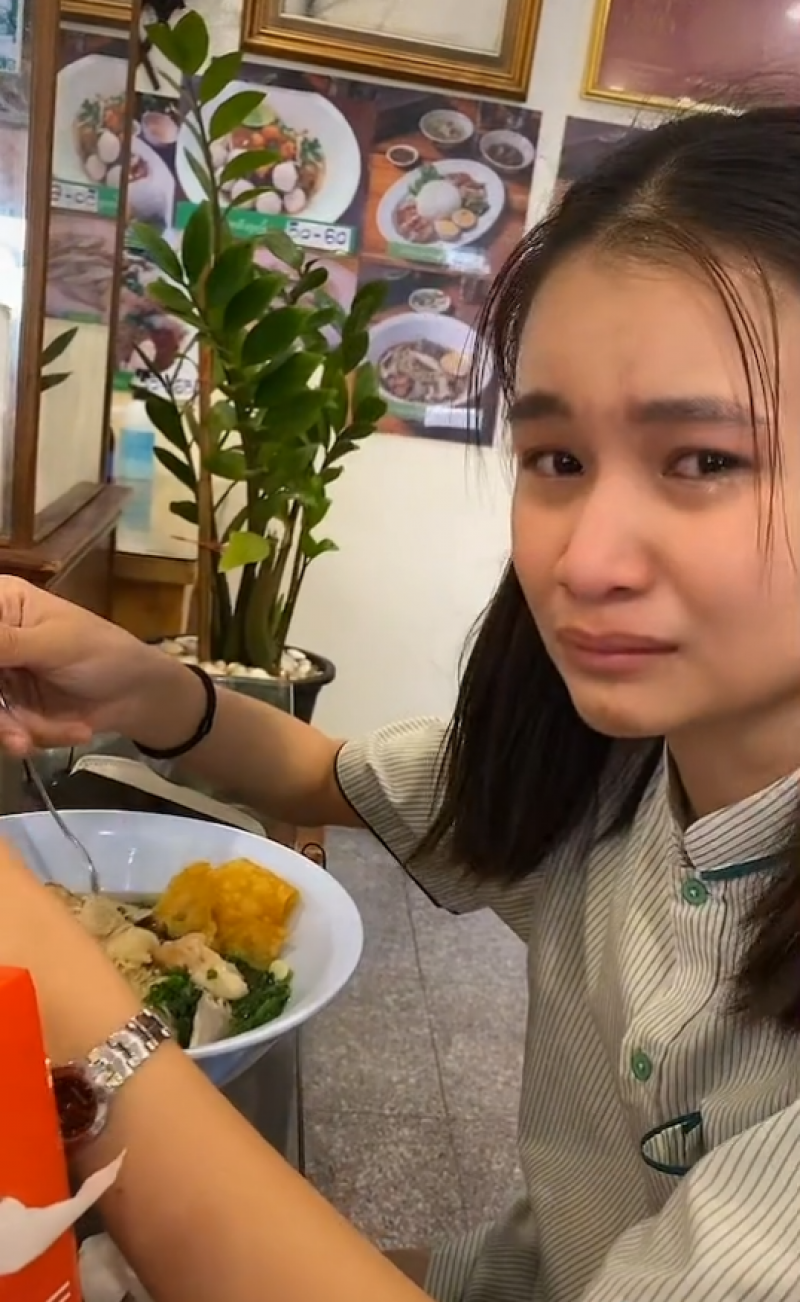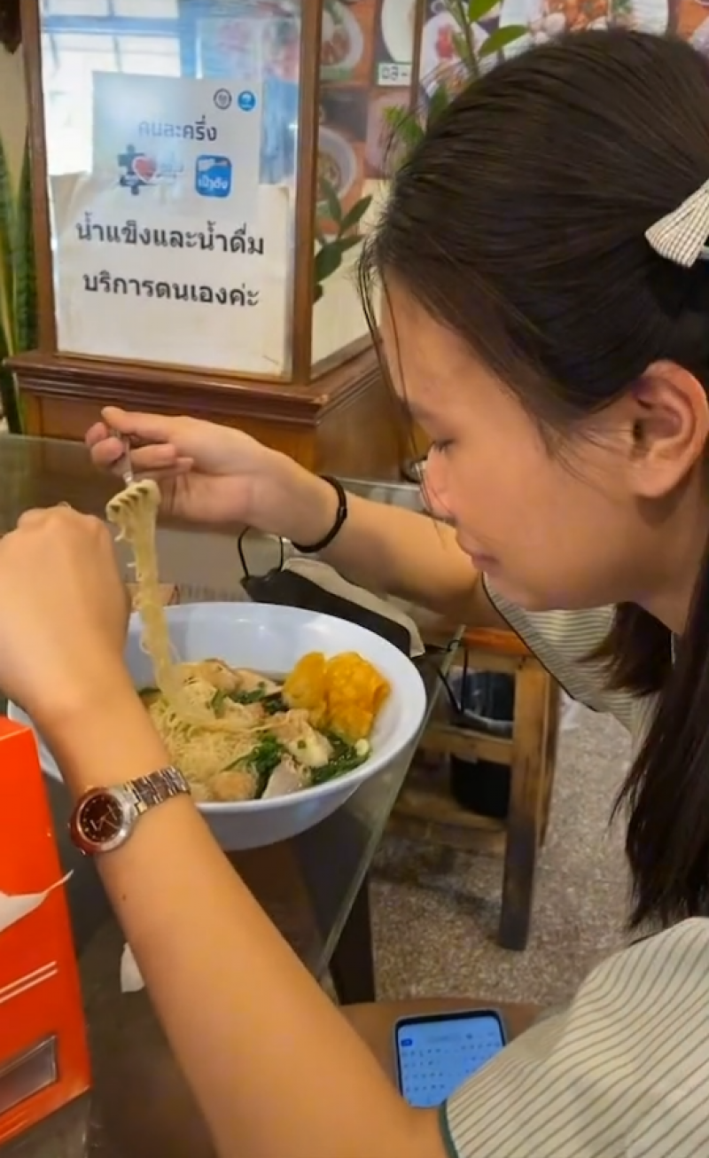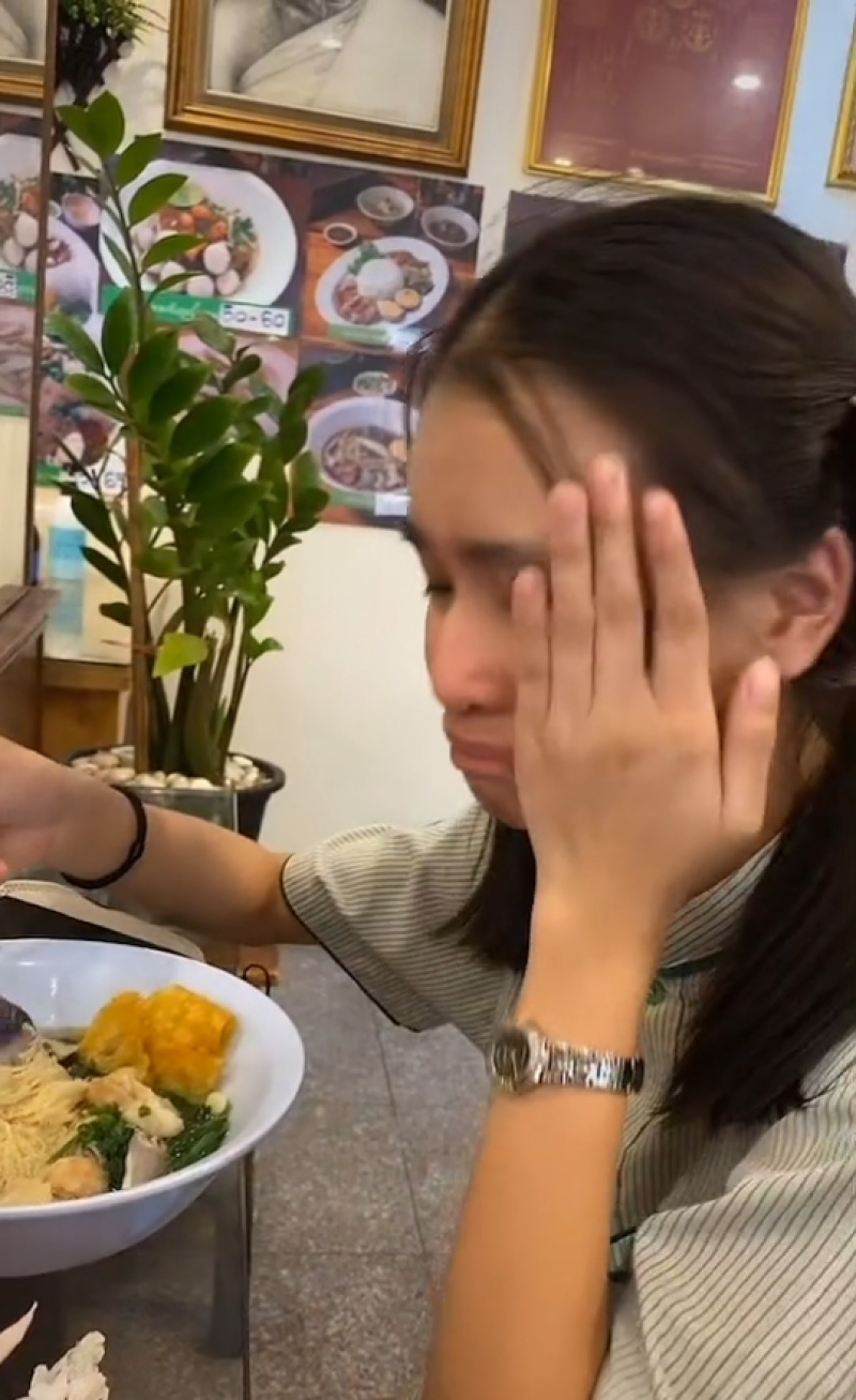 สาวพนักงานร้านสะดวกซื้อ มานั่งกินก๋วยเตี๋ยว ด้วยความเศร้า