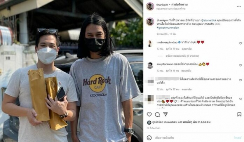 แต๊งค์ พงศกร มหาเปารยะ โพสต์ภาพกับ เบิร์ด แฟน แตงโม ภัทรธิดา (นิดา) พร้อมแคปชั่นว่า วันนี้ไปหาคุณเบิร์ดที่บ้านมา @stonerbkk คุณเบิร์ดบอกว่าตั้งใจทำเสื้อยืดให้ผมและภรรยาด้วย ขอบคุณมากนะครับ #greenmanmelon โดยมีคอมเมนต์จำนวนมากบอกเป็นเสียงเดียวกันว่าเป็นโมเมนต์น่ารักและมิตรภาพที่ดีงาม