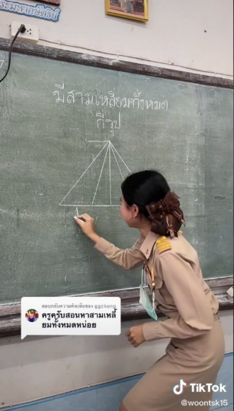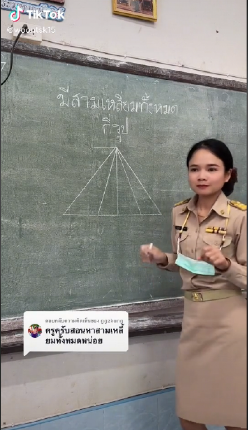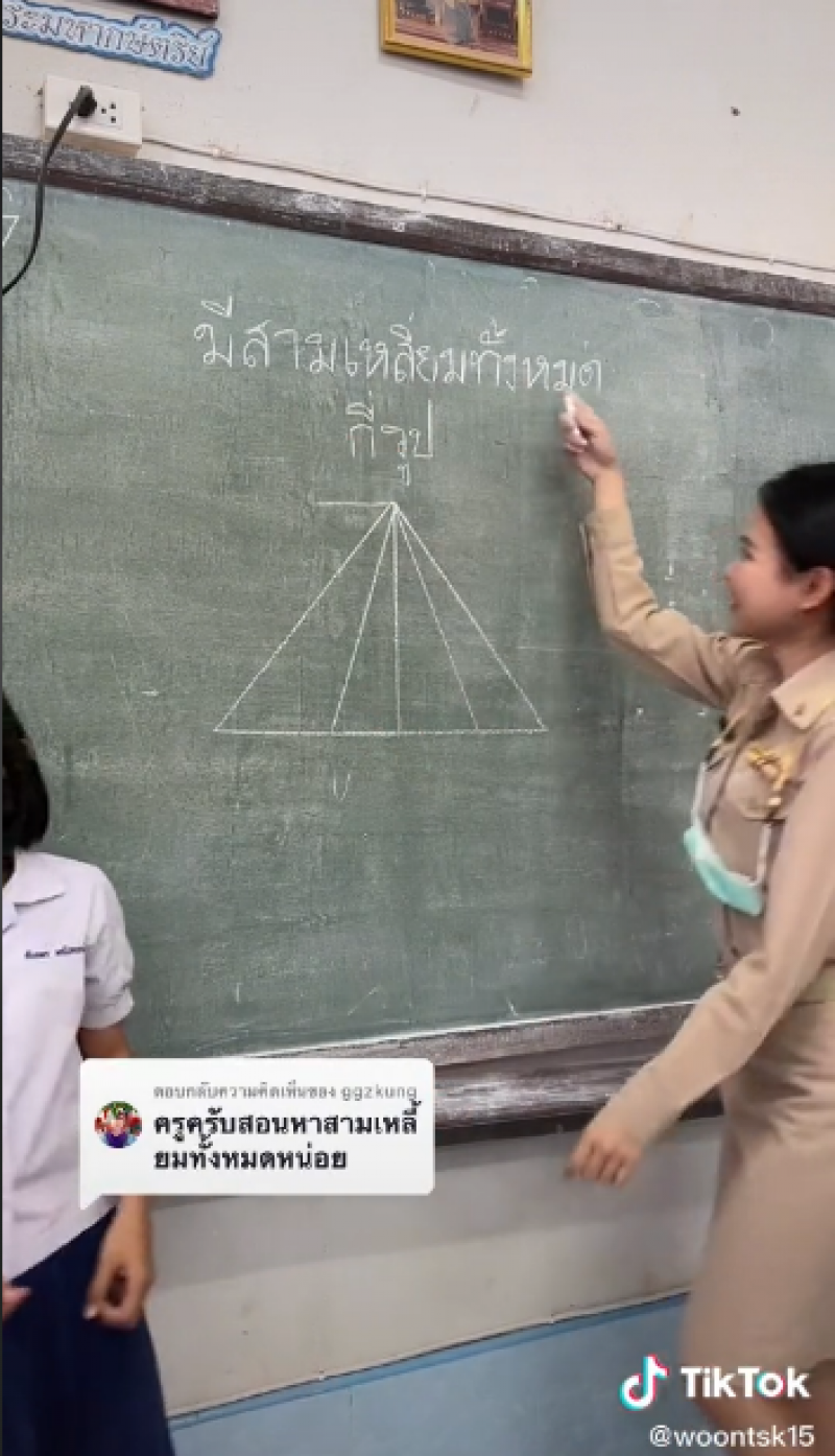 เรียกได้ว่ากลายเป็นเรื่องราวที่มีชาวโซเชียลเข้ามาดูเกินล้านคน สำหรับคลิปจาก Tiktok woontsk15 หรือ ครูวุ้น สอนคณิตศาสตร์ ชั้นประถมศึกษา ที่โรงเรียนบ้านท่าสีไค ที่ได้วาดรูปสามเหลี่ยมซ้อนทับกันบนกระดาน พร้อมตั้งคำถามว่ามีสามเหลี่ยมทั้งหมดกี่รูป ก่อนที่ท้ายคลิปจะมีการเฉลยคำตอบเป็นขั้นตอนว่ามีทั้งหมด 10 รูปนั่นเอง