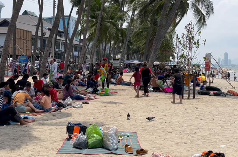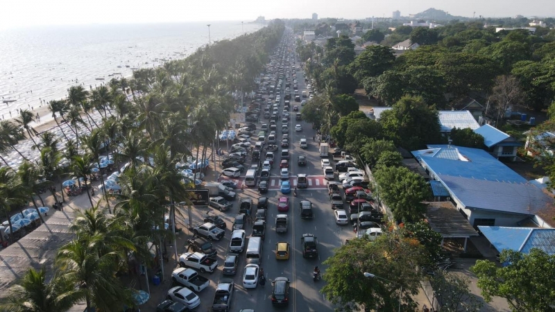 ผู้สื่อข่าวรายงานว่า บรรยากาศนักท่องเที่ยวทยอยมาเที่ยวทะเลบางแสนกันอย่างต่อเนื่อง การจราจรรถเริ่มติดขัดไม่มีที่จอด แต่ก็มีเจ้าหน้าที่ตำรวจ สภ.แสนสุข คอยมาอำนวยความสะดวกระบายรถกันอย่างต่อเนื่อง นักท่องเที่ยวต่างลงเล่นน้ำกันแน่นหนาตากว่าปกติ เนื่องจากเป็นวันหยุดยาวช่วงเทศกาลวันสงกรานต์บรรยากาศเป็นไปอย่างคึกคัก