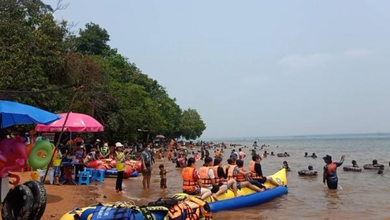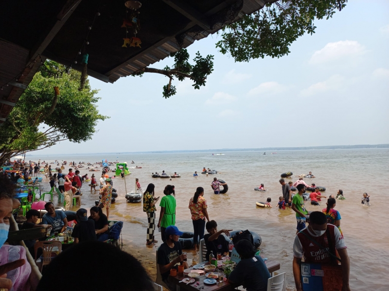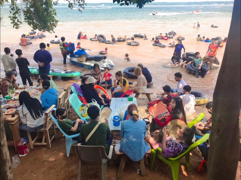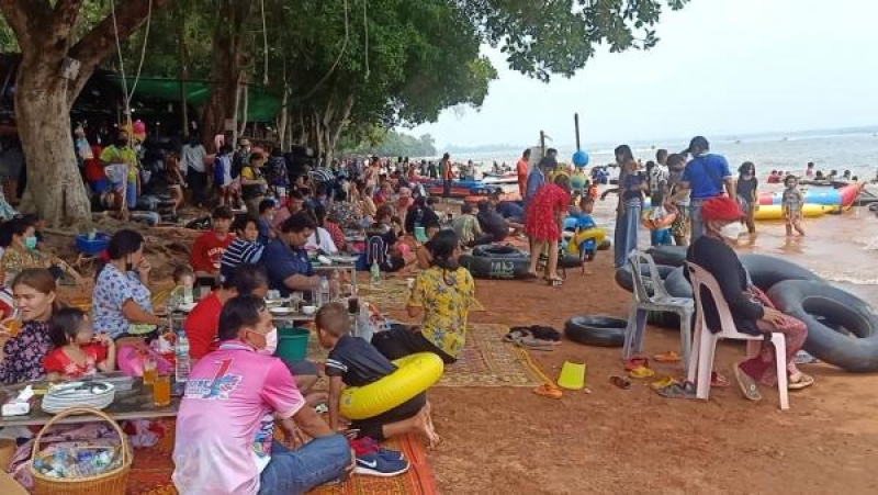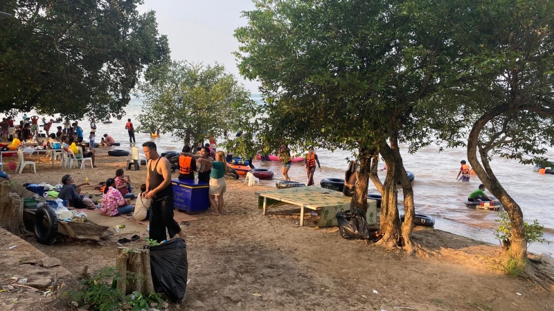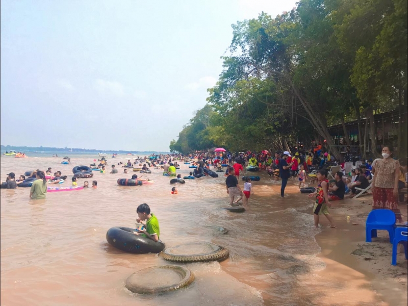 บึงกาฬ ไม่น้อยหน้า คนเที่ยวคึกคัก แน่นหาดคำสมบูรณ์