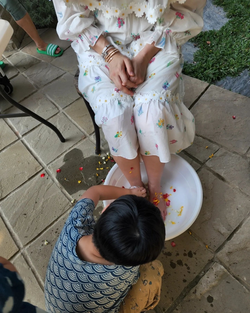 นอกจากนี้ยังมีโมเมนต์ น้องสายฟ้า-น้องพายุ ล้างเท้าให้กับคุณแม่อีกด้วย เห็นแล้วชาวเน็ตถึงกับใจละลาย เข้ามาคอมเมนต์ว่า สุขสันต์วันสงกรานต์คุณยายหนิงครับ ยุผอมแล้วแต่ความน่ารักยังเหมือนเดิม