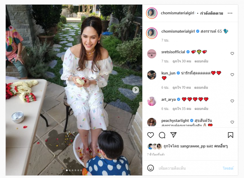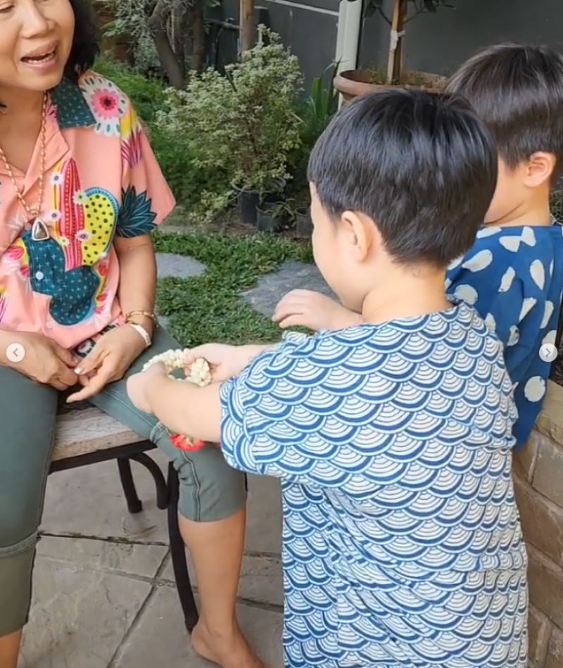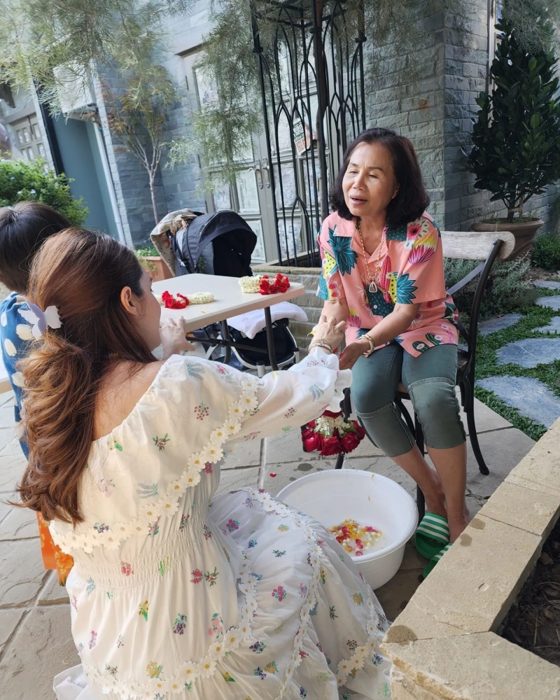 เมื่อวันที่ 14 เม.ย. ชมพู่ โพสต์รูปภาพน้องสายฟ้า-น้องพายุ ระหว่างรดน้ำดำหัวคุณแม่ และยายหนิง พร้อมลงคลิปวิดีโออวยพรสุดซึ้ง โดย ยายหนิง ได้ให้พรว่า ขอให้ยุโตขึ้นเป็นเด็กดี เป็นคนดีของพ่อแม่ เป็นที่รัก เป็นที่ปลาบปลื้มภูมิใจของวงตระกูล