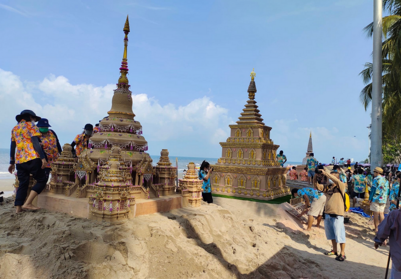 วันที่ 16 เม.ย.2565 ที่ชายหาดบางแสน ต.แสนสุข อ.เมือง จ.ชลบุรี ได้มีการจัดงานประเพณีก่อพระทราย วันไหลบางแสน ระหว่างวันที่ 16-17 เม.ย.2565 ซึ่งบรรยากาศในช่วงเช้า ปรากฏว่ากำลังมีการก่อพระทรายที่หาดบางแสน โดยปีนี้มีประมาณ 50 กอง ทำให้บรรยากาศยังคงครึกครื้น นักท่องเที่ยวหลายคนที่เดินทางมา บอกแม้ไม่มีการเล่นน้ำปะแป้งก็ไม่เป็นไรเพราะว่า อยากเห็นการก่อพระทราย เพราะมีความสวยงามมาก และพาลูกหลานมาเล่นน้ำทะเลกันอย่างต่อเนื่อง