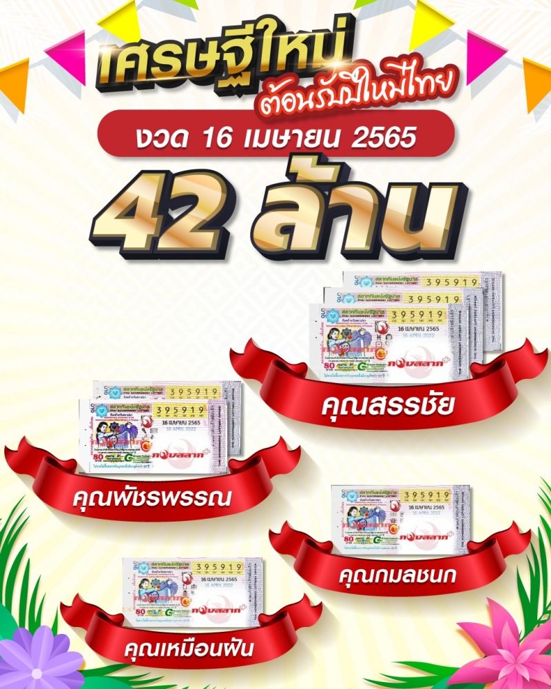 ซึ่งทางเพจระบุว่า เศรษฐีใหม่ ต้อนรับปีใหม่ไทย! งวดวันที่ 16 เม.ย. 65 มีลูกค้าถูกรางวัลที่ 1 กับกองสลากพลัส ถึง 4 ท่านด้วยกัน!!!!