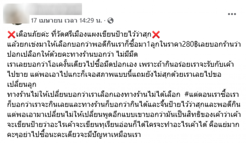 แม่ค้าเขียนป้ายว่าสุกแต่ แต่แกะทุเรียนมากินไม่ได้