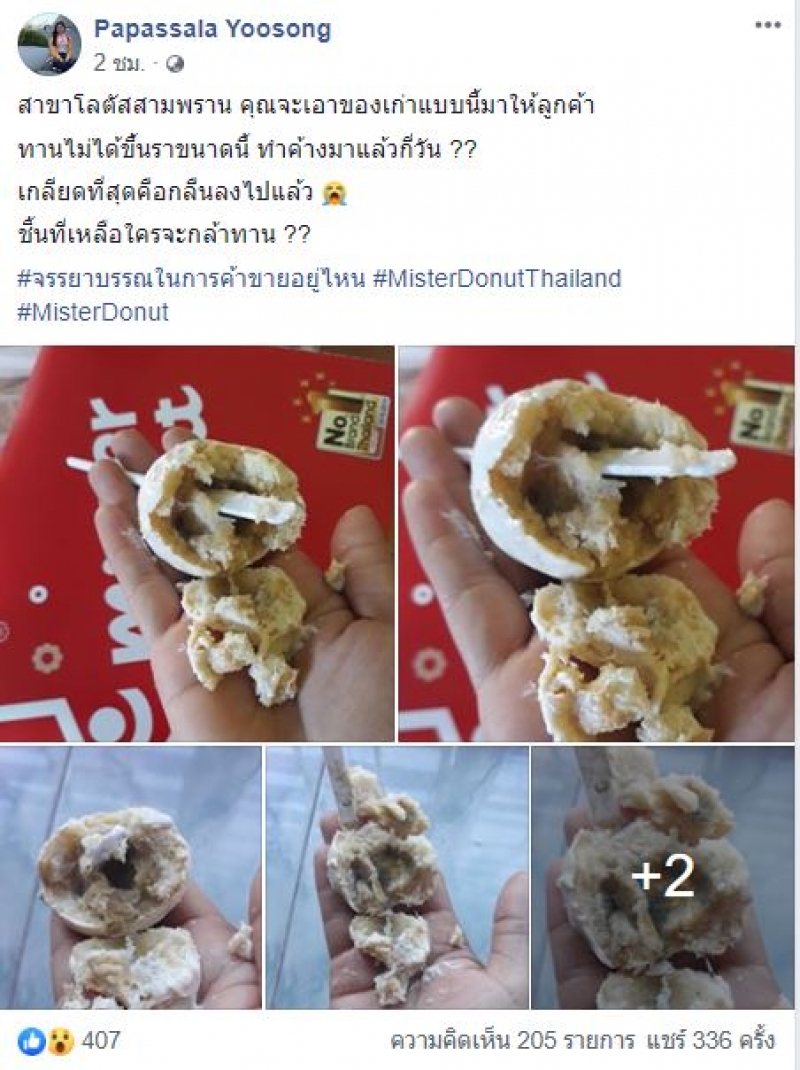 เรียกได้ว่าเป้นเรื่องราวที่มีคนต่างเข้ามาแสดงความคิดเห็นกันเป็นจำนวนมาก เมื่อสมาชิกเฟซบุ๊กชื่อ Papassala Yoosong โวยแหลกหลังซื้อโดนัทเจ้าดังมากิน