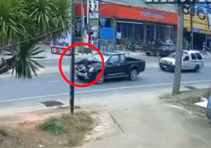 ภรรยาไหวตัวทันคว้ากุญแจรถพาหลานชายวัย 5 ขวบขับรถออกไปก่อน ทำให้ฝ่ายสามีกระโดดไปนั่งอยู่หลังกระบะ พอมาถึงด่านตรวจทหาร(ด่านจปร.) ภรรยาจึงหยุดรถ สามีจึงฉวยโอกาสกระโดดเกาะฝากระโปรงรถดังกล่าว จนเกิดเหตุการณ์ระทึกขึ้น