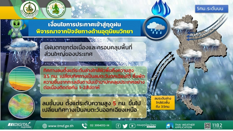 โดย 3 เงื่อนไข การประกาศเข้าสู่ฤดูฝน ปี 2565 จะพิจารณาจากปัจจัยทางด้านอุตุนิยมวิทยา ประกอบด้วย