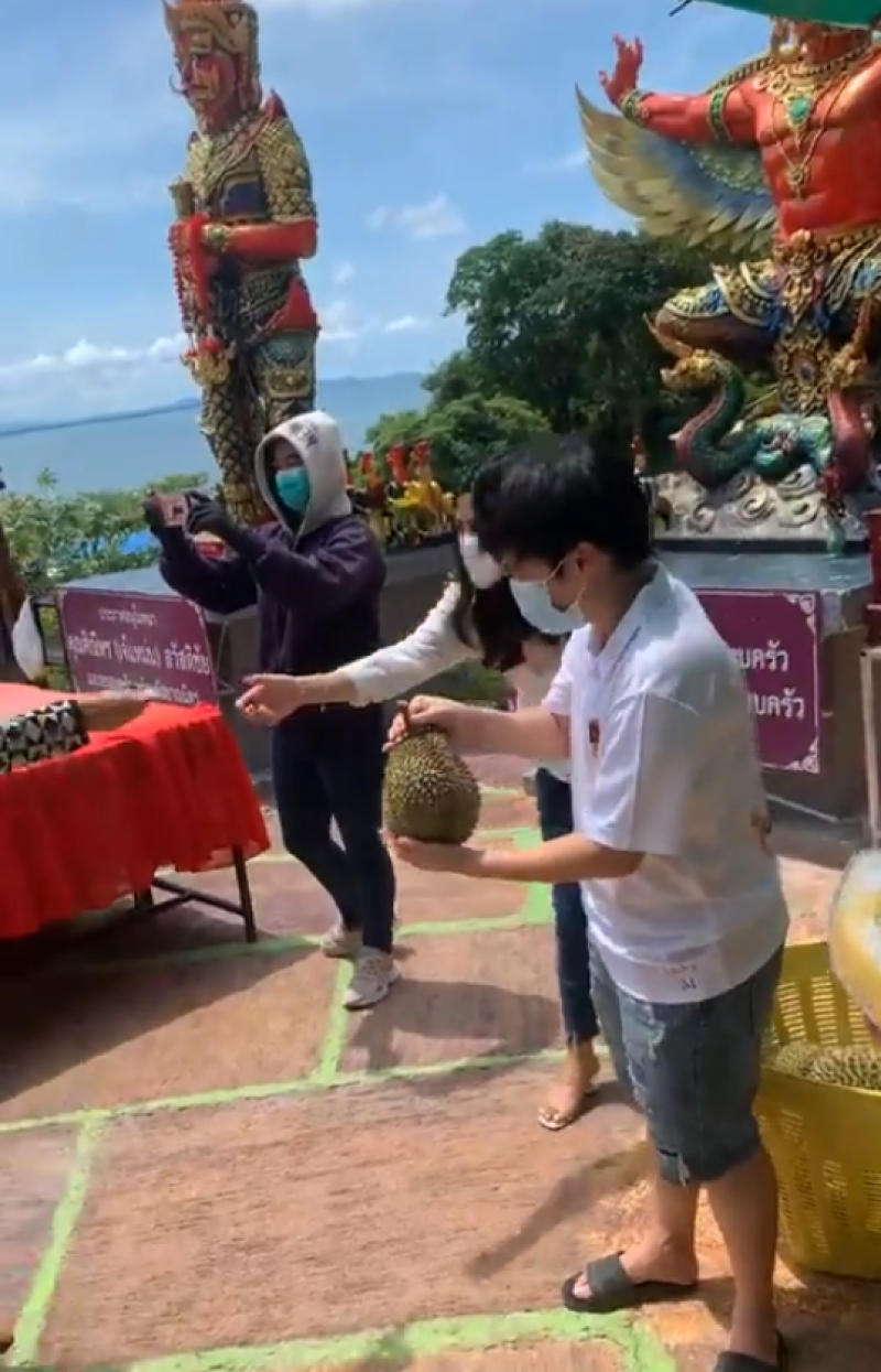ทราบชื่อเจ้าภาพผู้ใจบุญคือ น.ส.ประภาพร ตันเจริญ หรือ แอดมินไผ่ จากเพจ Durian chaba v2 จากจันทบุรี ที่เดินทางมากับครอบครัว พร้อมขนทุเรียนอีกจำนวน 9 ตะกร้าใหญ่ น้ำหนักรวมกว่า 500 กิโลกรัม คิดเป็นมูลค่ากว่า 6 หมื่นบาท เข้ามาที่วัด