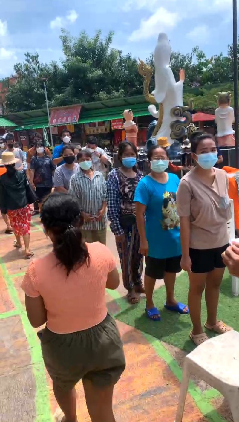 โดยทางเจ้าภาพได้แจกบัตร ผู้ที่จะรับแจกทุเรียน เพื่อไปต่อคิวเข้าแถว พร้อมกับเว้นระยะห่างตามมาตรการป้องโควิด 19 จากนั้น น.ส.ประภาพร พร้อมกับครอบครัว ช่วยกันนำทุเรียนแจกให้แก่ให้กับนักท่องเที่ยวและชาวบ้านเอง ซึ่งบรรยากาศเป็นอย่างคึกคัก
