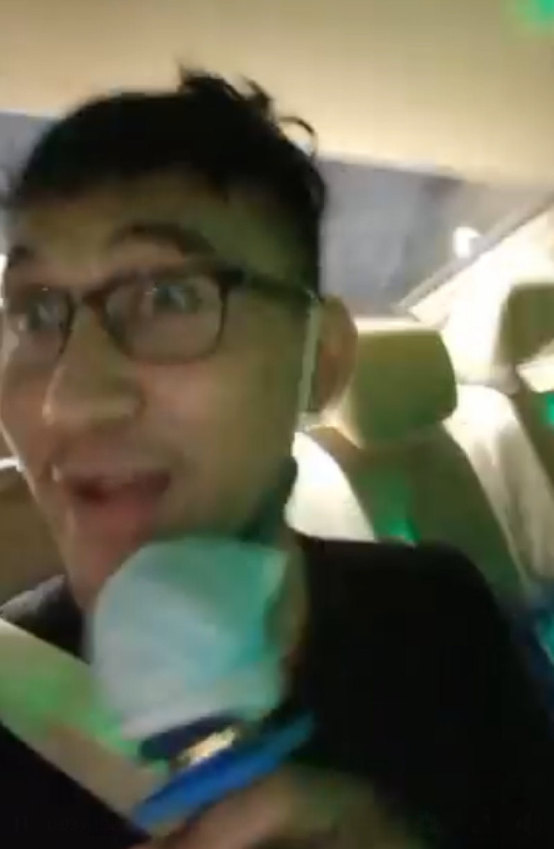 โดยระบุข้อความว่า เรียกแกร็บ มาซะตื๊ด . . . ในที่สุดผมก็ได้ร้องเกะ . . .ตอนแรกนั่งมาเฉยๆ อยู่ดีดีพี่คนขับถาม ร้องเพลงมั้ยน้อง…จัดมาสิพี่ แล้วพี่แกก็เปิดไฟเธค 5555 จากนั้นก็ตามคลิป อ้อ ผมบอกพี่แกว่าพึ่งตรวจAtkมา เลยถอดแมสก์นะครับ . . #อยากเหมาไปให้ถึงโคราชเลยแบบนี้