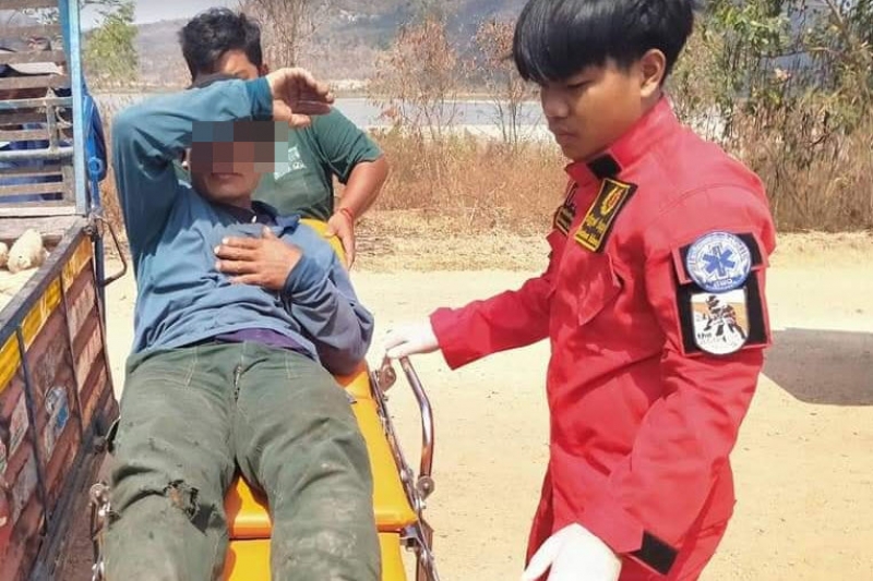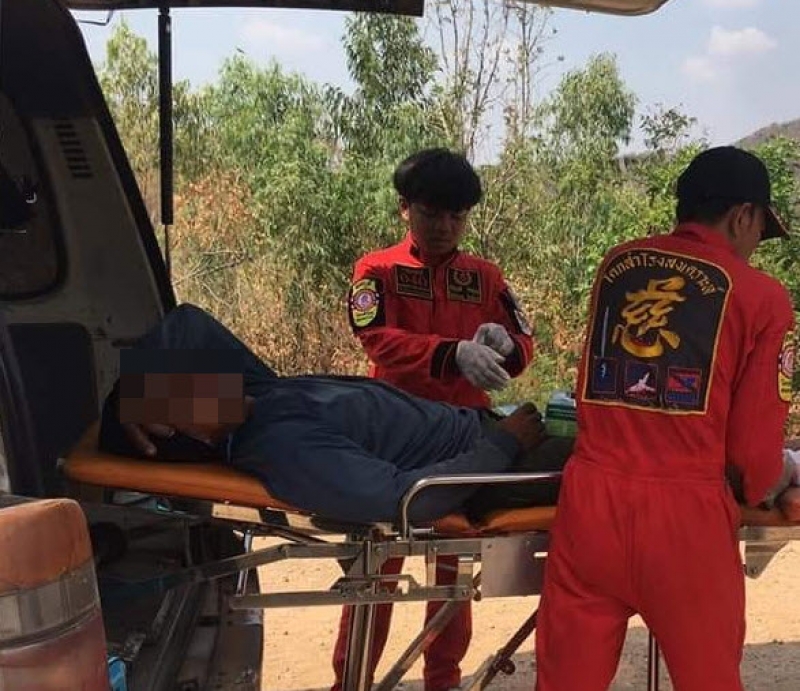 จากการสอบถามให้การว่าตนเองได้ทำงานขุดมันอยู่ บริเวณ ตีนเขา หมู่ที่ 4 ต นิยมชัย ขุดไปได้สักพัก น่าจะไปถูกวัตถุประหลาดที่อยู่ใต้ดิน เนื่องจากบริเวณดังกล่าว เป็นพื้นที่ฝึกซ้อมทางการทหาร ทำให้เกิดเหตุการณ์ได้ จนทำให้ได้เกิดเรื่องดังกล่าว ซึ่งทางเจ้าหน้าที่มูลนิธิได้ดำเนินการให้การช่วยเหลือ