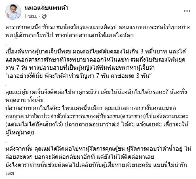 หมอแล็บออกมาโพสต์แฉ ดาราชาย