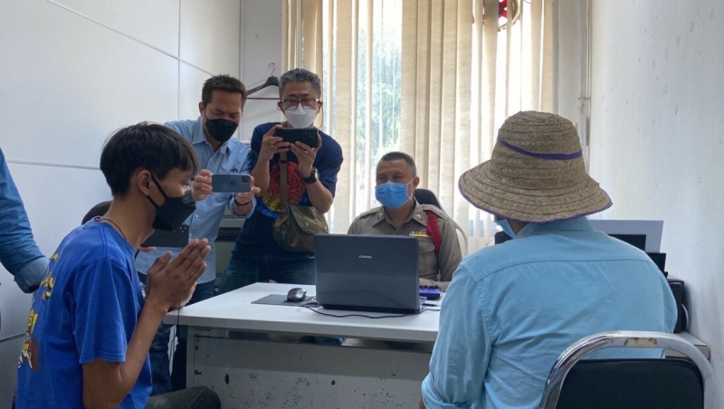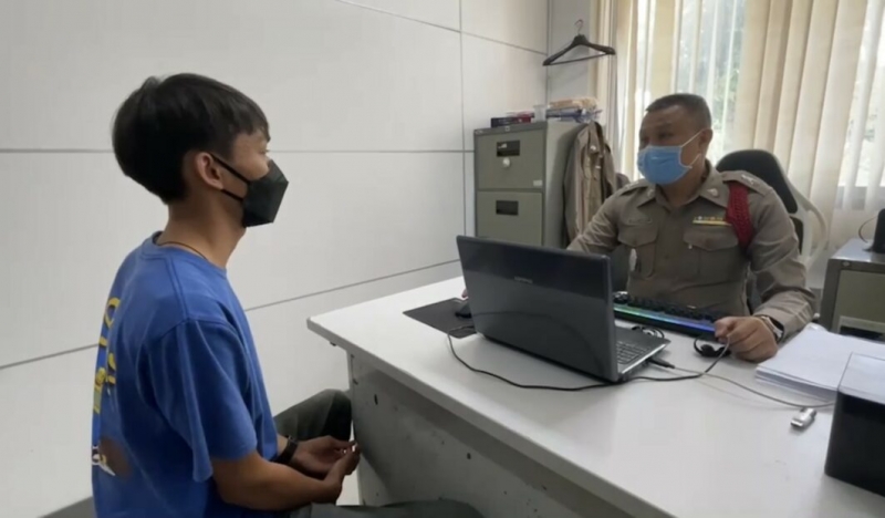 ต่อมานายหนุ่ม ผู้เสียหาย ได้เดินทางมายัง สภ.บางศรีเมือง เจ้าตัวก็ได้เดินเข้าไปพบกับพนักงานสอบสวน พ.ต.ต.สินสมุทร์ บุญทัศนา สารวัตรสอบสวน โดยภายในห้องนั้น นายโกสินทร์ มะคำไก่ หรือ ฟลุ๊ค อายุ 23 ปี ผู้ก่อเหตุ ได้นั่งรออยู่ก่อนแล้ว เนื่องจากเจ้าหน้าที่ตำรวจได้เชิญตัวมายังสถานีตำรวจตั้งแต่ช่วงเช้า