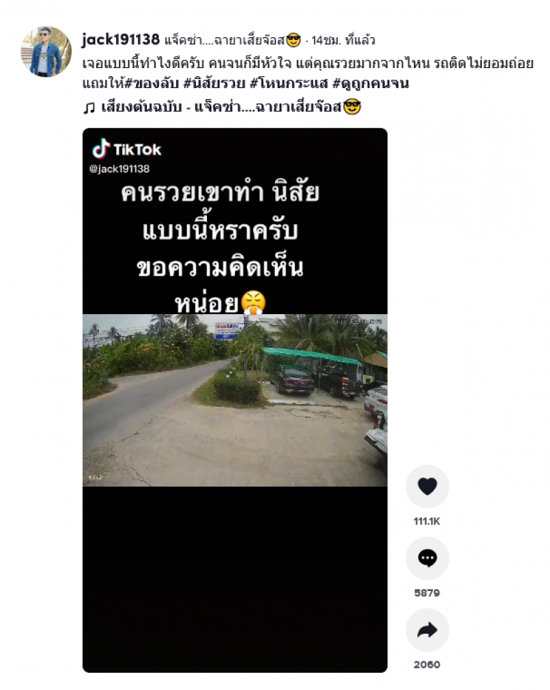 เรียกได้ว่ากลายเป็นอีกหนึ่งเรื่องราว ที่เรียกเสียงวิพากษ์วิจารณ์เป็นอย่างมาก หลังจากที่ในโลกออนไลน์ ผู้ใช้ Tiktok รายหนึ่ง โพสต์คลิปจากกล้องวงจรปิด เป็นเหตุการณ์ขณะที่ชายขับรถหรู มีปากเสียงกับพนักงานในร้านแห่งหนึ่ง ก่อนที่ชายขับรถหรูจะตะโกนดูถูกพนักงานว่าเป็นคนจน