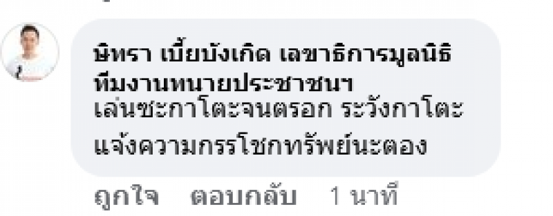 ล่าสุด ระหว่างในรายการกำลังดำเนินไป ทางด้านทนายษิททรา ก็ได้โผล่มาคอมเม้นท์ เตือนทางด้านสาวตอง โดยระบุว่า เล่นซะกาโตะจนตรอก ระวังกาโตะแจ้งความกรรโชกทรัพย์นะตอง