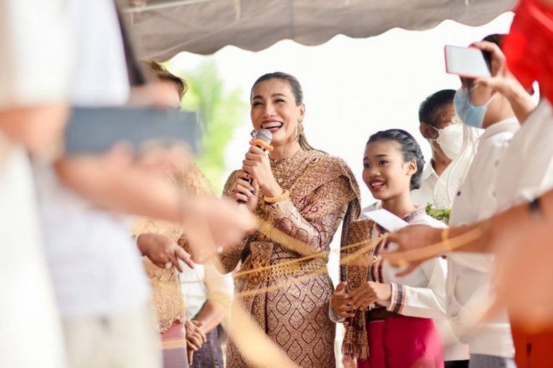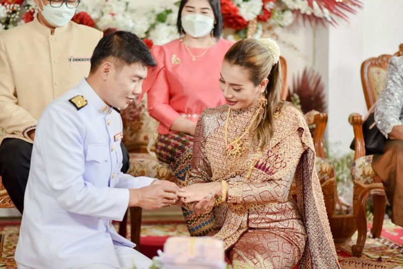 โดยมีนายเฮง ทองแท่งไทย ประธานบริหารเครือเทพประทานพร กรุ๊ป และนางวัชราภรณ์ ผ่องใส ที่ปรึกษา นายกอบจ. ขอนแก่น ให้เกียรติเป็นประธานในพิธีงานแต่ง นายกหนุ่มสมพงษ์ ตรีไมราช นายก อบต.นาฝาย และกำนันสาว ประทุมทิพย์ นามภูเขียว กำนันตำบลนาฝาย โดยกำนันสาวได้นำเอาสินสอด ไปสู่ขอนายกหนุ่ม 1 ล้านบาท ทองคำรูปพรรณ 5 บาท รถยนต์มาสด้า cx8 1 คัน รวมสินสอดมูลค่า 3 ล้านบาท ท่ามกลางแขกผู้ใหญ่มาเป็นสักขีพยานมากมาย