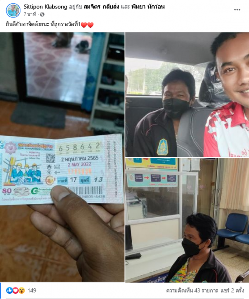 ล่าสุดได้ทีสาวรายหนึ่งได้โพสต์ผ่านเฟสบุ๊ค พบผู้ถูกรางวัลที่ 1 โดยระบุว่า ยินดีกับอาจิตด้วยนะ ที่ถูกรางวัลที่1 ท่ามกลางชาวโซเชียล ที่เข้ามาแสดงความยินดีกันเป็นจำนวนมาก