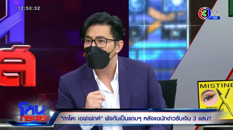 จากนั้นหนุ่ม กรรชัย โฟนอิน กาโตะ เข้ามาในรายการว่า ยืนยันจ่ายเงินให้คนกลาง เพื่อนำไปจ่ายให้สื่อ โดยคนกลางมาบอกมีสื่อสามารถเคลียร์ได้ แต่ไม่ทราบว่าสื่อคนนั้นเป็นใคร ซึ่งคนกลางไม่ขอบอกว่าเป็นใคร และเป็นพระหรือไม่ แต่ส่วนตัวจ่ายเงินไปแล้ว 3 แสน เงินอยู่ที่คนกลางแล้วแต่จะเอาไปใช้อะไร ส่วนตัวมีหน้าที่จ่ายให้จบ ถ้ายังไม่นำเงิน 3 แสนไปจ่ายก็สามารถนำมาคืนได้