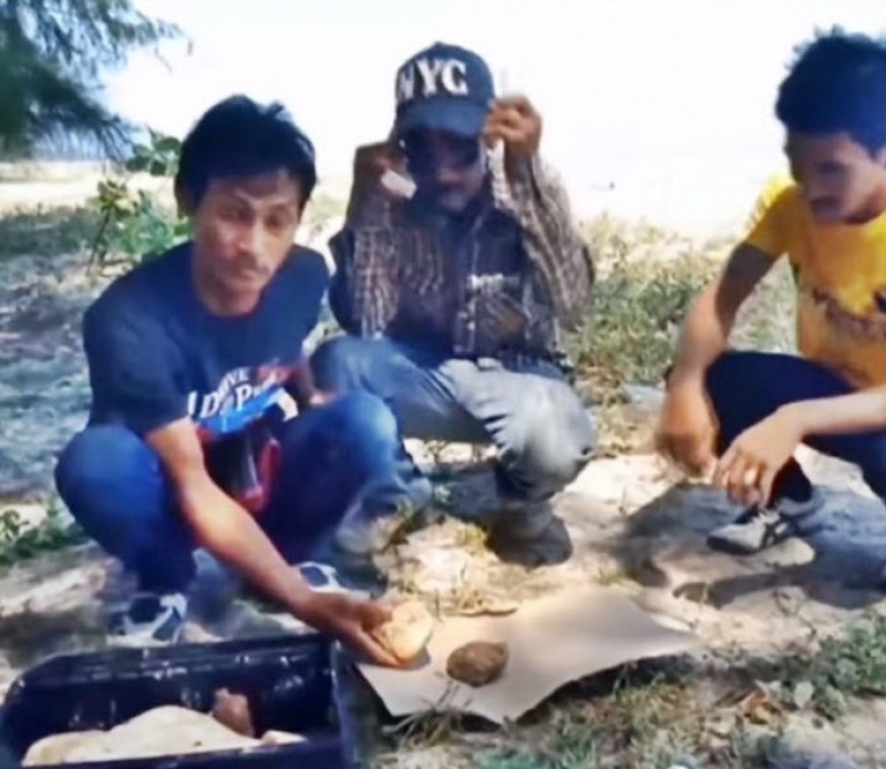 จากนั้น เก็บมาใส่กล่อง นำไปสอบถามผู้รู้ในหมู่บ้าน และหลายคนต่างยืนยันว่าเป็นอำพันทะเล ซึ่งเป็นสิ่งพบยากมากในท้องทะเลอ่าวไทย พวกตนจึงค้นข้อมูลเรื่องอำพันทะเลในอินเทอร์เน็ต โดยนำมาเทียบกับก้อนวัตถุที่พบ