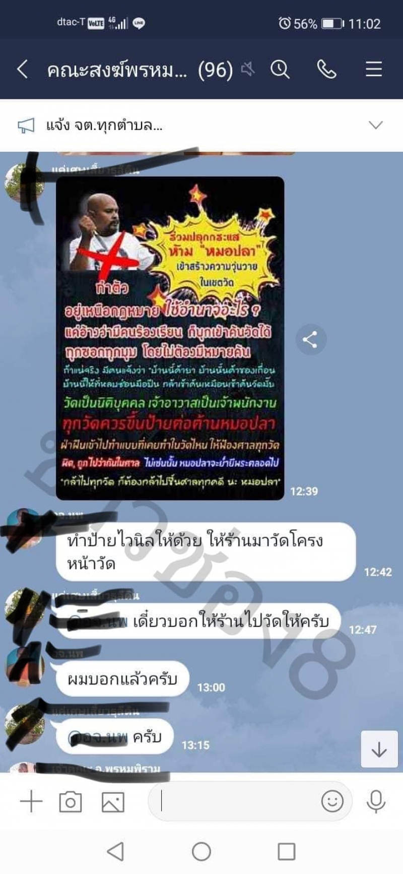 ต่อมา มีรายงานว่าในโซเซียล ได้มีการเผยแชทข้อความ ซึ่งเป็น ไลน์กลุ่ม ของวัดดังกล่าวที่ขึ้นป้ายห้ามหมอปลาเข้า ในอำเภอพรหมพิราม จังหวัดพิษณุโลก แหล่งข่าวที่ส่งข้อมูลให้ยืนยันว่าเป็นไลน์จริง และคนที่สั่งทำป้ายดังกล่าวก็คือเจ้าอาวาสวัด