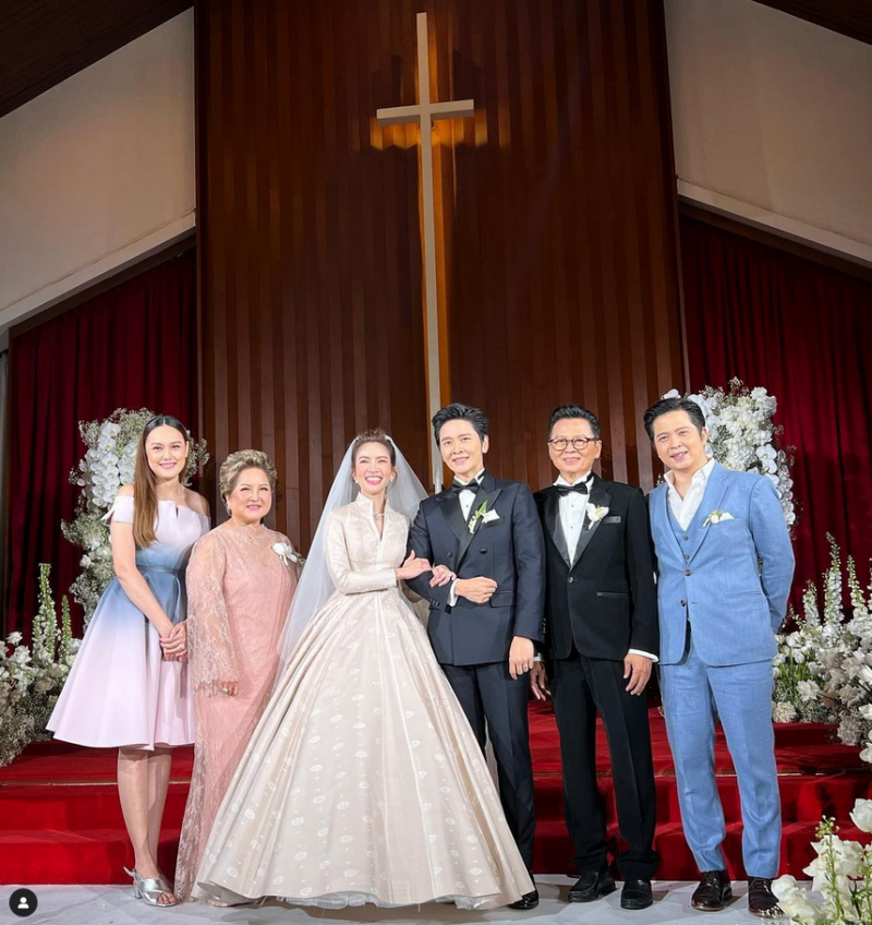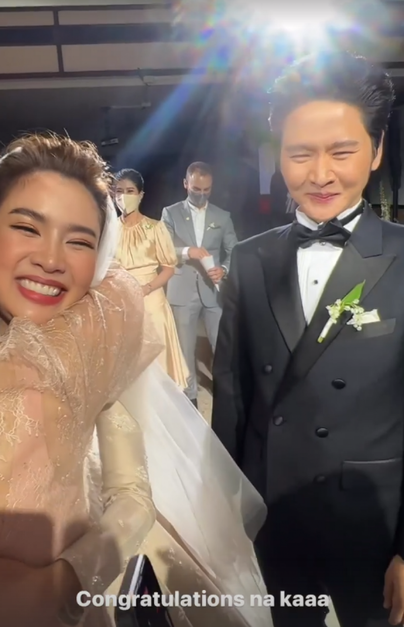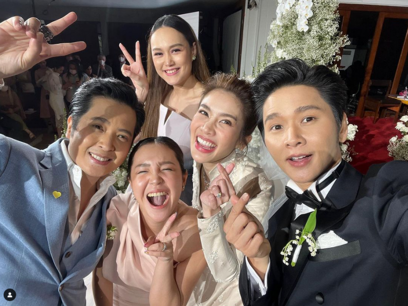 ทางด้าน สรยุทธ สุทัศนะจินดา พิธีกรรายการ เรื่องเล่าเช้านี้ ที่ไปร่วมงานแต่งก็ได้โพสต์ภาพทั่งคู่ยืนคู่กันอย่างหวานชื่น พร้อมพร้อมชั่นเป็นรูปหัวใจ